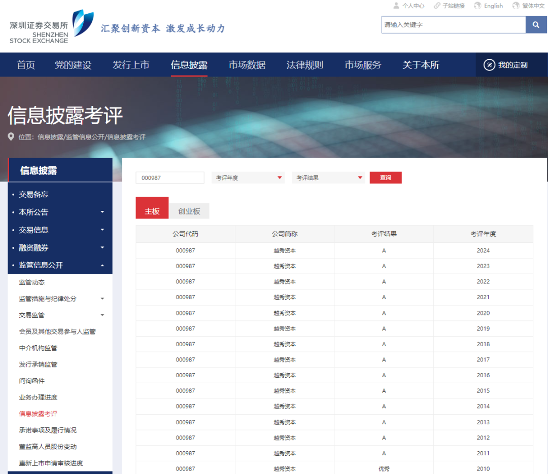 近日,深圳证券交易所(下称“深交所”)发布深市上市公司2024-2025年度信息披露评价结果,越秀资本(000987)(000987.SZ)再次荣获A级,这是公司连续15年获得该项考评最高评级。