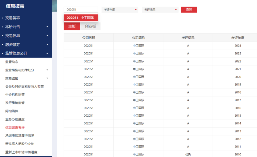 日前,深圳证券交易所公布了深市上市公司2024-2025年度信息披露考核结果,中工国际(002051)以一贯的高质量信息披露和高水平规范运作再次获评“A”级。这是公司连续15年蝉联信息披露最高评级。这一靓丽的成绩,不仅彰显深交所对中工国际信息披露质量、公司治理规范的高度认可,更是公司具备长期投资价值的有力印证。